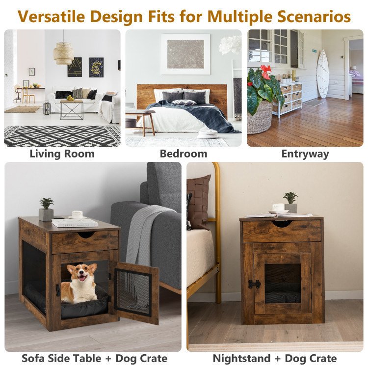 3.Spacious Tabletop and Drawer: Featuring a 25" x 19.5" wide tabletop, this versatile dog crate furniture is ideal for displaying photo frames, potted plants, vases and more. Besides, it comes with a pull-out drawer to keep your room clean and tidy by providing private space for your pet's favourite snacks, toys or your daily essentials.