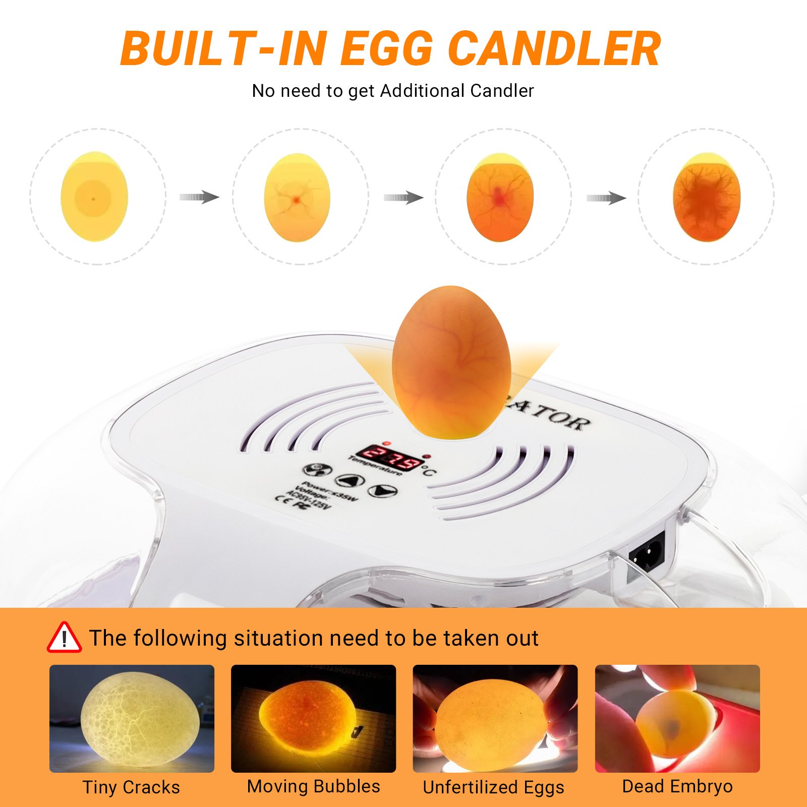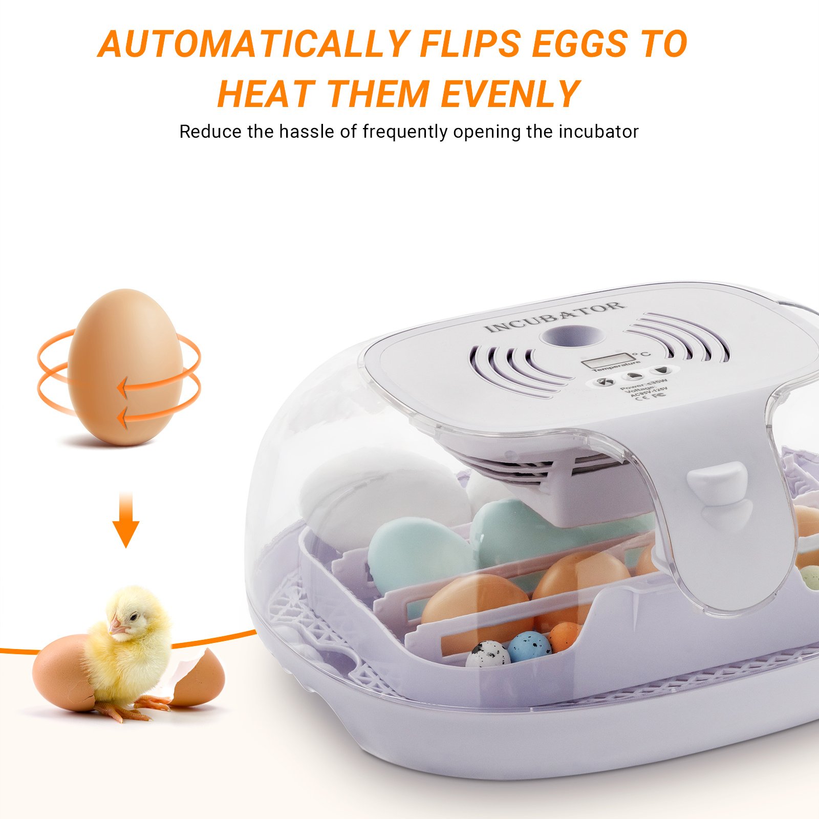 2.The egg incubator chassis is detachable for easy cleaning after use! It is more versatile than other smaller incubators. Ideal egg incubator for small to medium series!