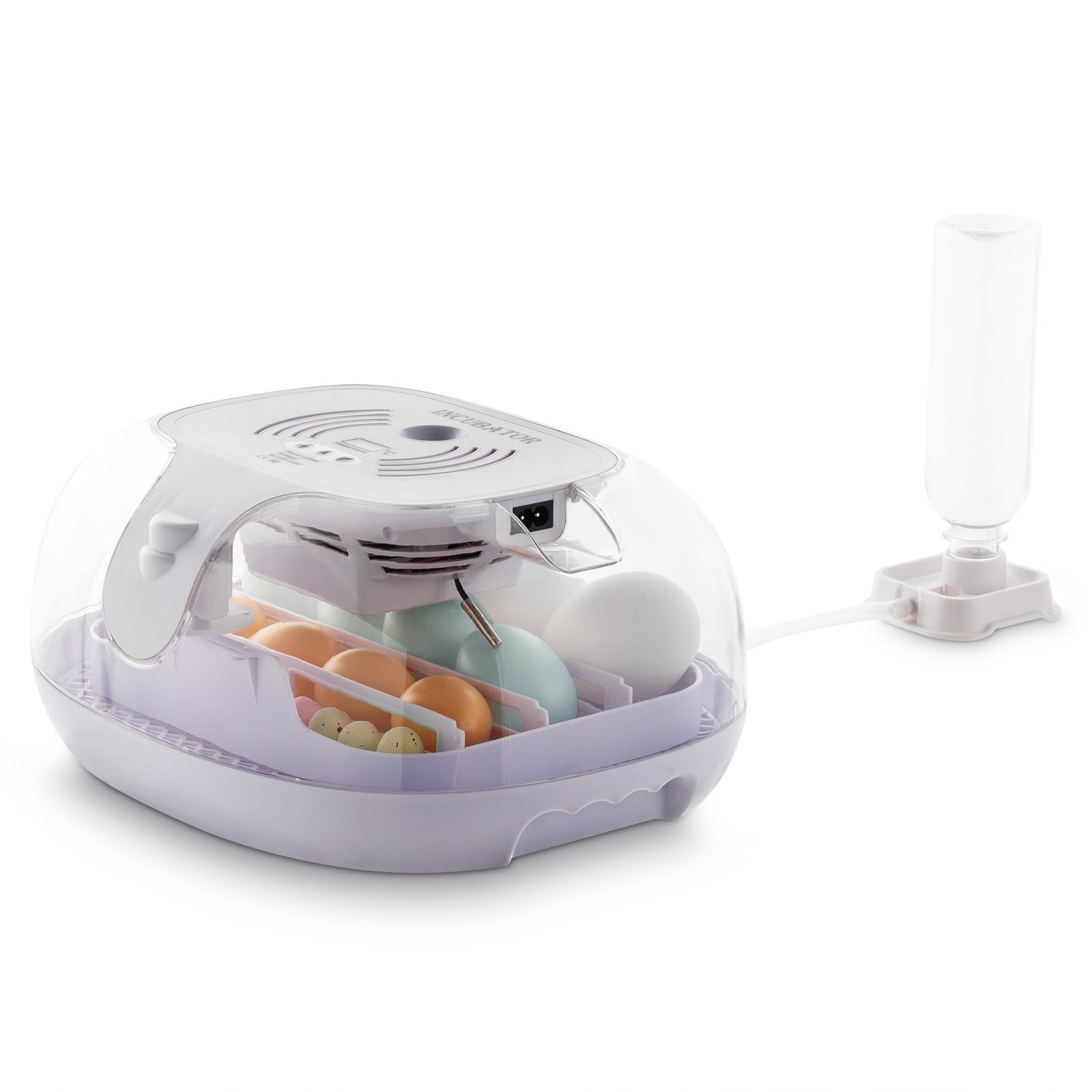 This automatic water delivery system combined with the automatic egg turning system can save the time you need to spend babysitting the eggs, reduces the opening operation, and when combined with the temperature stabilizer, the hatching rate will be greatly increased. It is invisible to see the turner work, but it did turn and work, And you don't need to turn the eggs manually.