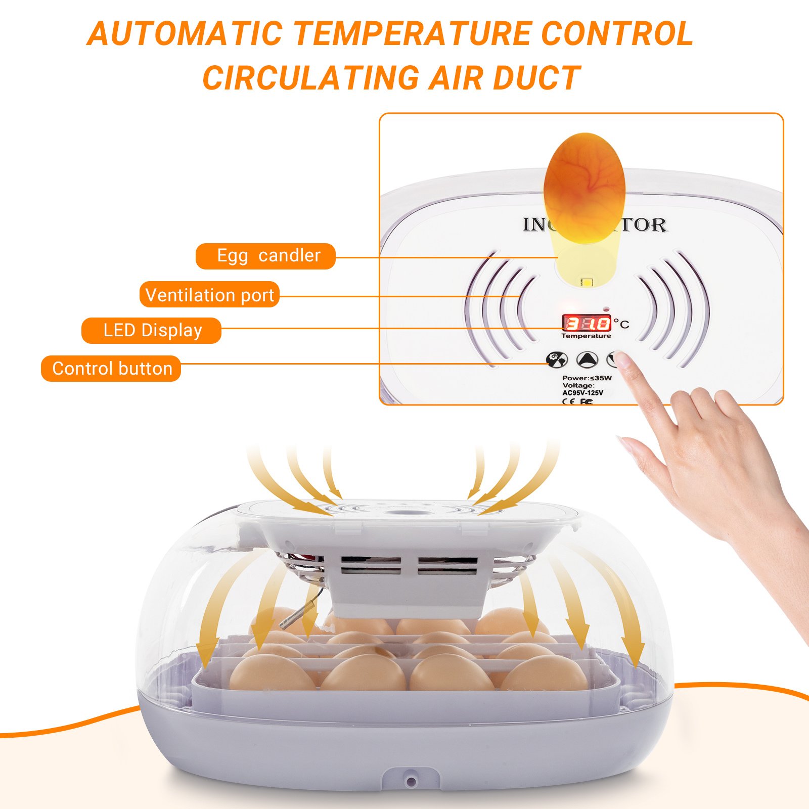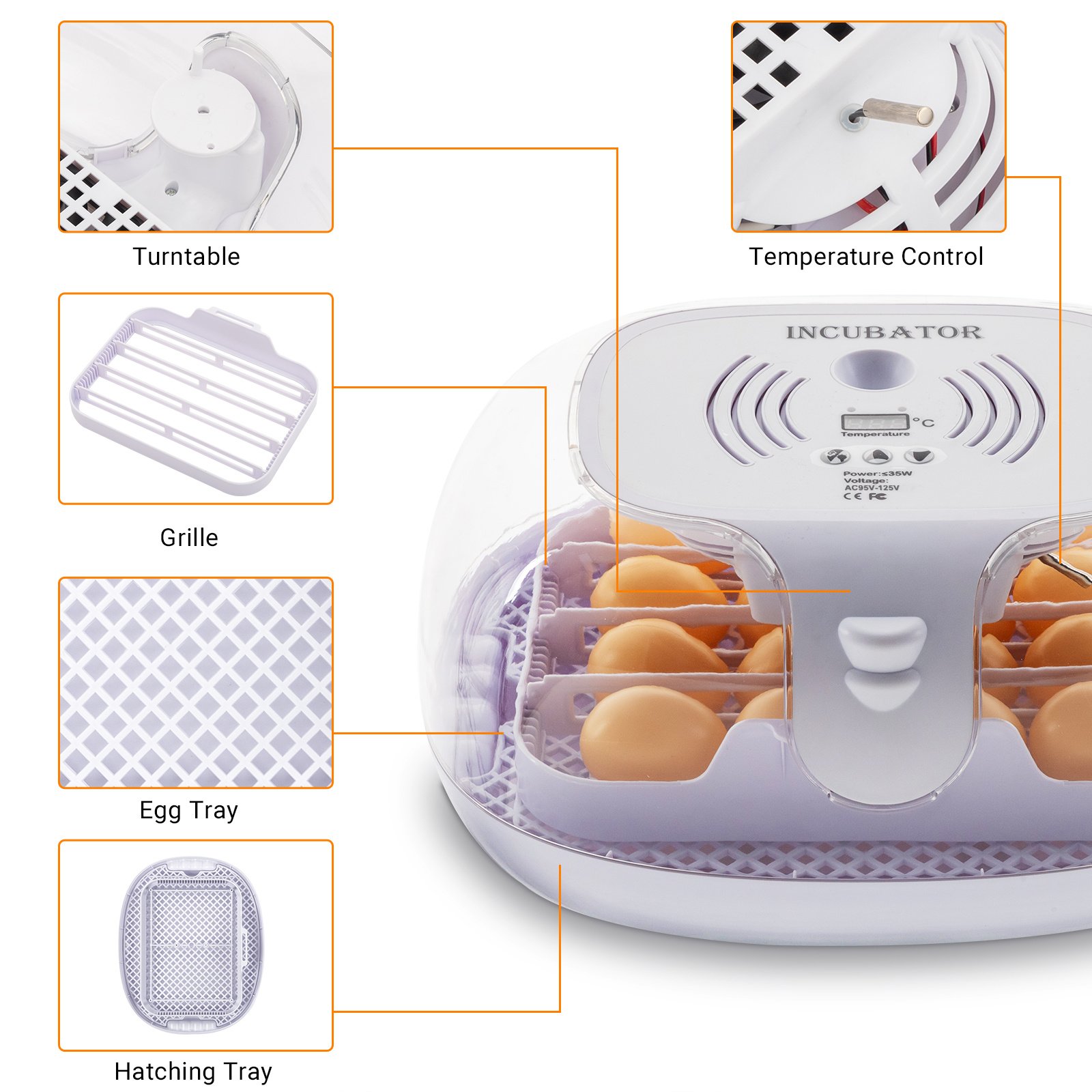 8. Incubation Quantity: 16 pcs(Capacity Changes According to the Type of Egg)