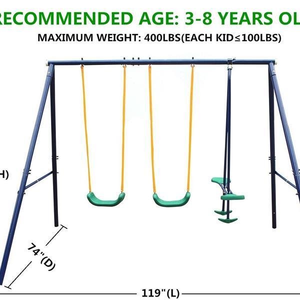 DescriptionCOOLMORE Velvet Accent Chair with Adjustable Armrests and Backrest, Button Tufted Lounge Chair, Single Recliner Armchair with OttomanModern & Elegant ChairThis accent chair comes in handy when you require a piece of functional and stylish furniture. The soft fabric covering adds a touch of texture to this chair black -finish legs complete its contemporary look.Sturdy DesignElegantly curved silhouette provides maximum comfort, metal frame legs are very sturdy. Weight Capacity: 250lbs.Easy to Assemble & CleanThis comfy chair with ottoman set is easy to assemble. You only need to install the chair legs One person can assemble it in 15 minutes and all the accessories and required are included.Weights & Dimensions&DescriptionProducts SizeChair:32.28'' x 30.71" x 30.71'' /ottoman:18.9" x 15.75" x 15.75"Seat Height15.75"Seat depth19.69''Seat Width24.02''Arm Height23.62"Back Height - Seat to Top of Back15.35"Net weight / Gross Weight51.35LBS /55.1LBSFeet materialIronColorBlackUpholstery MaterialVelvetProduct TypechairFrame MaterialPlywoodSeat Fill MaterialFoamWeight Capacity350LBAssembly Required:YES[Sturdy Swing Stand] The swing frame is made of heavy duty steel and A-frame construction create superior solid and safe structure.[EASY TO ASSEMBLE]Instructions are simple to follow.Package has equipped with essential tools and components are pre-drilled for assembly.[Safe & Comfortable] The U-shaped curve is designed to fit children's body, more comfortable and user-friendly.[Durable & Weather-Resistant] Constructed of high quality metal frame with steel chain and thick durable rope. The swing is waterproof and rust-proof, so that it can accompany the children to grow up.[Seating Capacity]This unit is designed for maximum of 2 children between the ages of three and eight years old.[Dimensions] 124" x 74" x 73" [Packing Size]59''X18''X1 '' [N.W./G.W.]31/33kg [Swing Set Type]Bench [Number Of Swings]4 [Weight]76. 6