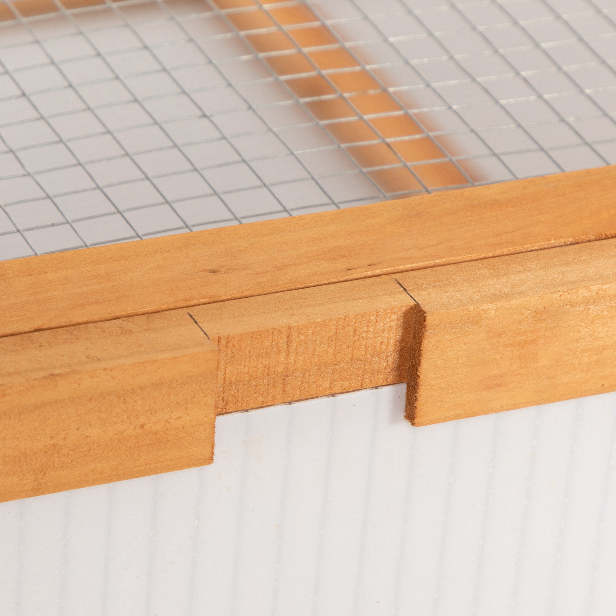 [Durable and Sturdy Material]: Made of quality water-based firwood and strong galvanized wire mesh, the cat cage is sturdy and weatherproof to protect your pets safe from predators.