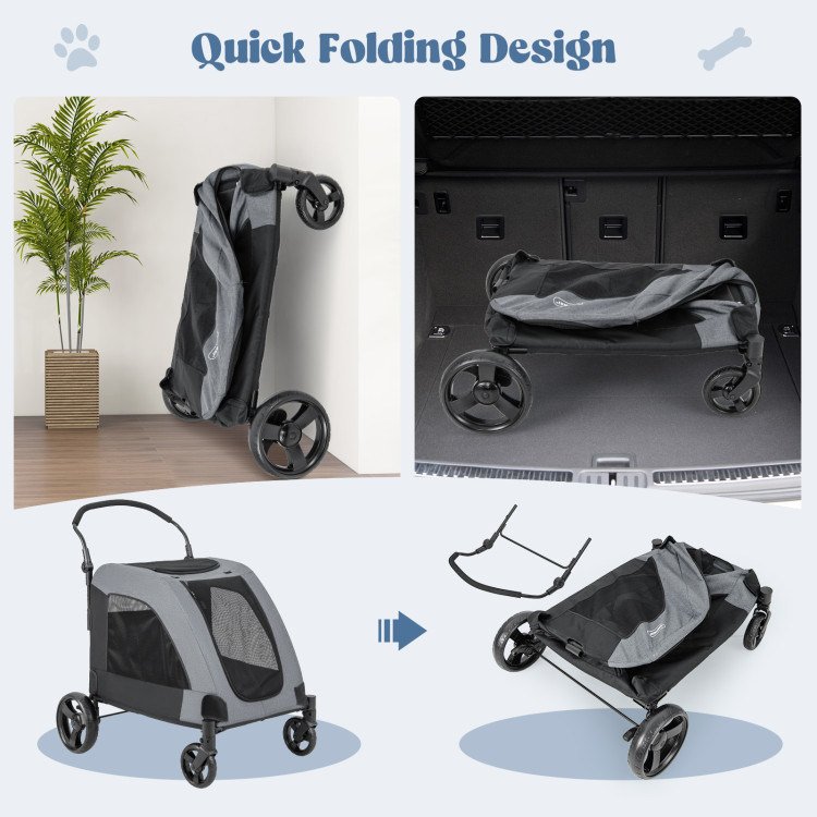 5.Space-saving Folding Design: When not in use, our dog stroller can be easily folded to satisfy your needs. Whether you're heading out on a road trip or simply need to store the stroller in a compact space at home, our foldable design ensures