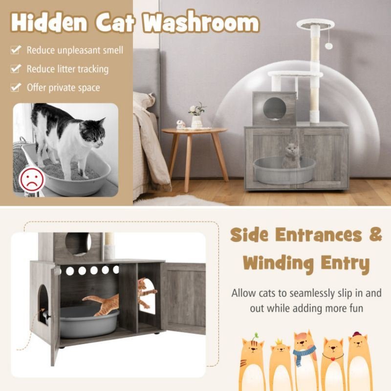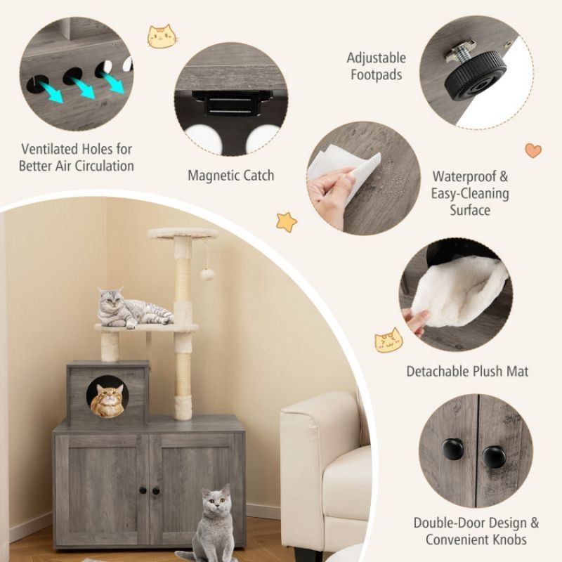 -All-in-1 design allows cats to rest, play and poop in an ideal space