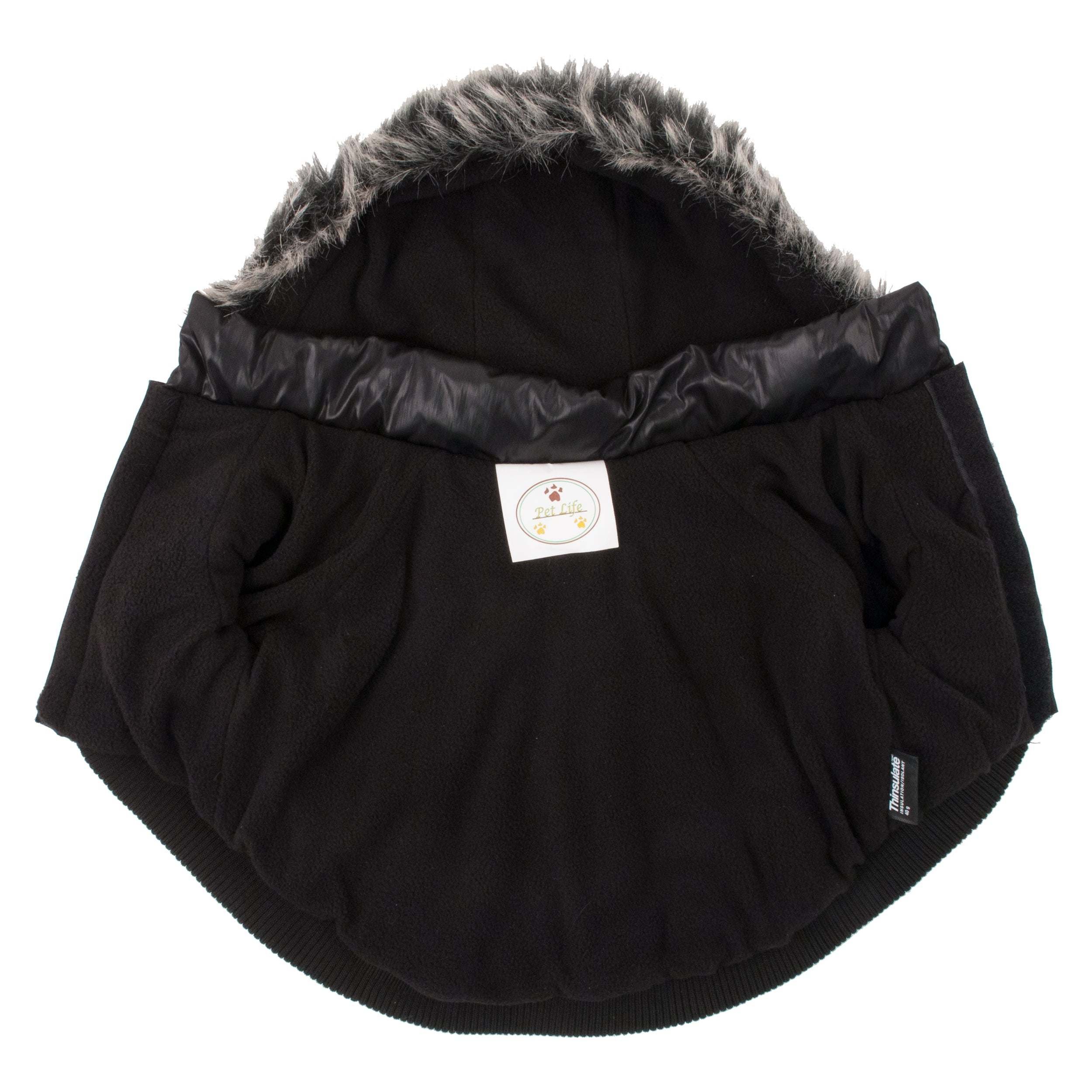 The Pet Life Metallic Parka Dog Coat contains Thinsulate thermal heat retention technology as an inner shell specially inserted between the fabric. This pet coat features matching tone-on-tone inner fleece fabrics, a faux fur removable zip-off hood, a leash slit, and belly-velcro closures for easier on and off access. This coat will keep your pet warmer during those harsher cold weather condition. Available in multiple sizes and colors.