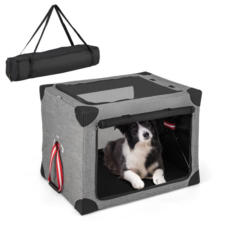 M/L 3-Door Dog Crate with Removable Pad and Metal Frame