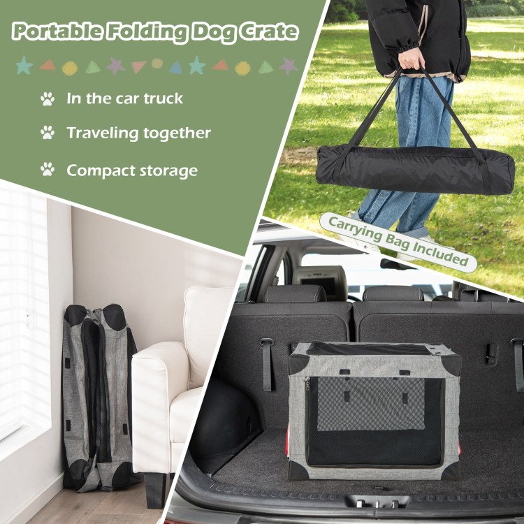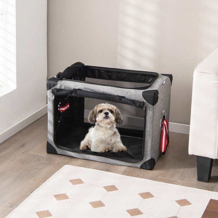 M/L 3-Door Dog Crate with Removable Pad and Metal Frame