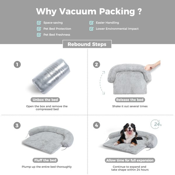 [Innovative Modular Design]: This dog bed can be adapted as your pet grows. 1 Roll it up into a snug donut bed for a small puppy, and 2 unfold it into a spacious sofa bed as your dog grows. 3 Expandable for Large Dogs: For grown dogs or for Human+2 dogs, simply purchase another unit and splice them together to create a super large kennel, providing ample space for your pet's comfort.