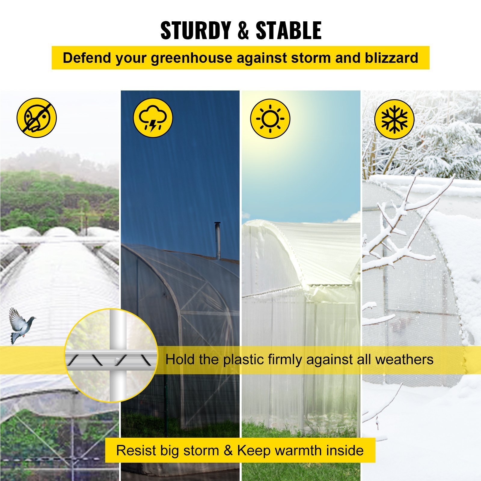 4.Tight Fixation: Our lock channel and spring wire are made in one piece and match each other perfectly to hold your plastic tightly in place, resisting all storms and keeping the inside of your greenhouse warm and cozy.